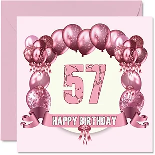 Zabawne kartki urodzinowe na 57. urodziny dla kobiety - balony urodzinowe - kartka z życzeniami dla taty mamy dziadka niani babci wujka kuzyna przyjaciela, 145 mm x 145 mm kartki z życzeniami, kartka