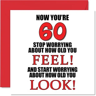Zabawne kartki urodzinowe na 60. urodziny dla mężczyzn kobiet - How old You Look - kartka urodzinowa dla taty, mamy, dziadka, niani, babci, wujka, kuzyna, 145 mm x 145 mm kartki z życzeniami