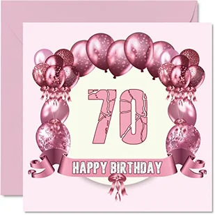 Zabawne kartki urodzinowe na 70. urodziny dla kobiety - balony urodzinowe - kartka z życzeniami dla taty mamy dziadka dziadka niani babci wujka cioci, 145 mm x 145 mm kartki z życzeniami, kartka na