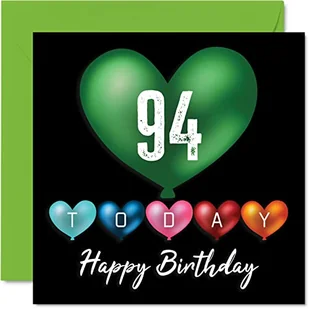 Zabawne kartki urodzinowe na 94. urodziny dla mężczyzn kobiet - balony w kształcie serca - kartka z życzeniami dla pradziadka dziadka niani babci babci taty mamy, 145 mm x 145 mm kartki z życzeniami