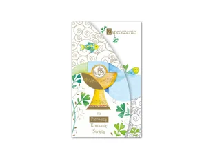 Zaproszenia składane na I Komunię Świętą niebieskie.