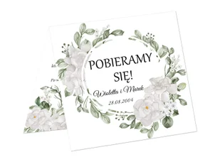 Zaproszenia personalizowane na ślub w motywie białych kwiatów. W komplecie znajduje się biała koperta. Wymiary: 14x14 cm (14x28). Opakowanie: 6 szt.