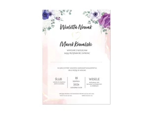 Zaproszenia personalizowane nieskładane na ślub w motywie kolorowych kwiatów. W komplecie znajduje się biała koperta. Wymiary: 10 x 14 cm. Op. : 8 szt. W wiadomości do sprzedającego należy podać imiona Państwa Młodych, datę i godzinę uroczystości, adres.