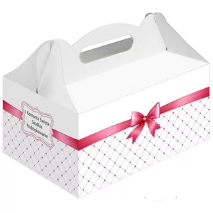 Pudełko na ciasto komunijne. Do samodzielnego złożenia. Wykonane ze sztywnego papieru. Na pudełku widnieje napis "I Komunia Święta, Słodkie podziękowanie. Zestaw 10szt. "