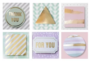 Zestaw 12 sztuk pastelowo złotych, samoprzylepnych karnetów do podpisywania prezentów.