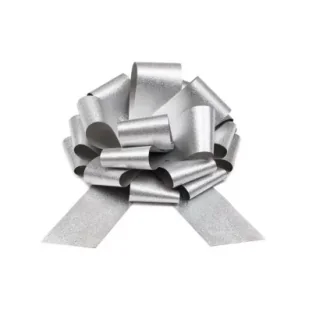Kokarda Ozdobna Dekoracyjna na PREZENT DIY srebrna brokatowa DUŻA 30cm