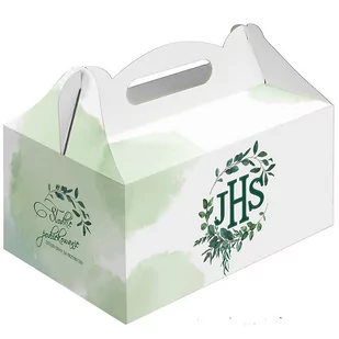 Pudełko na ciasto komunijne. Do samodzielnego złożenia. Wykonane ze sztywnego papieru. Papier posiada certyfikat do kontaktu z żywnością. Zestaw 10szt.