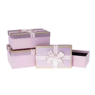 Zestaw pudełek prezentowych z kokardą 3szt fioletowy Wymiary pudełek:S: 19x12x6,5cmM: 21x14x8cmL: 23x16x9,5cm