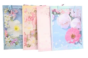 Torba ozdobna duża - mix. Artykuł papierniczy. Torba ozdobna duża to praktyczne i eleganckie rozwiązanie na pakowanie prezentów na różne okazje Wykonana z trwałego, papierowego materiału, zdobiona delikatnymi kwiatowymi motywami w pastelowej kolorystyce, które dodają jej wyjątkowego uroku i. . .