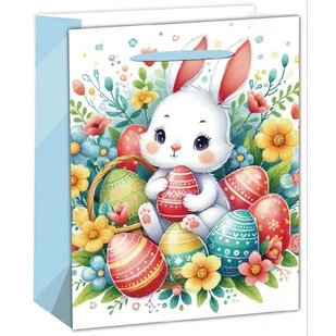 Torba prezentowa z motywem króliczka, aby uczynić święta jeszcze bardziej szczęśliwymi, radosnymi i słodkimi. Jest praktyczna, wielokrotnego użytku i dlatego mniej szkodliwa dla środowiska niż tradycyjny papier do pakowania. Materiał: papier