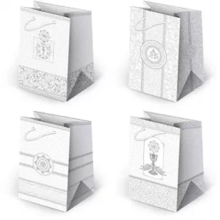Torebka ozdobna KOMUNIA T-5L mini, mix wzorów, wzór wysyłany losowo, wymiary po rozłożeniu: 16x10x6cm