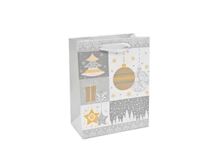 Torebka prezentowa z bożonarodzeniowym nadrukiem. Wymiary: 18 cm x 23 cm x 10 cm. Opakowanie: 1 szt.