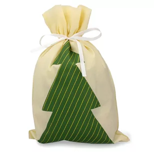 Worek na prezenty i upominki na Mikołajki czy Boże Narodzenie Ciekawy sposób na zapakowanie prezentów czy słodkości Idealny dodatek podczas domowej uroczystości i świątecznego rozdawania prezentów Prosty w użyciu i bardzo funkcjonalny (wystarczy pociągnąć za wstążki by zamknąć worek) Kolor: kremowy z zieloną choinką Wymiary: Wysokość: 45cm Szerokość 30cm