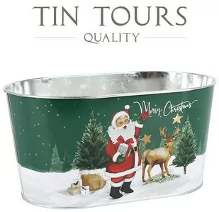 ZIELONY OWALNY METALOWY KOSZYK Z MIKOŁAJEM 22,5x13,5x11 cm Przeznaczenie: osłonka na gwiazdę betlejemską, osłona na cyprys, metalowy koszyk do pakowania prezentów bożonarodzeniowych, osłonki na stroiki świąteczne, pudełko metalowe na prezent z motywem świątecznym Specyfikacja Wymiary koszyka: długość zewnętrzna: 22,5 cm szerokość zewnętrzna: 13,5 cm wysokość: