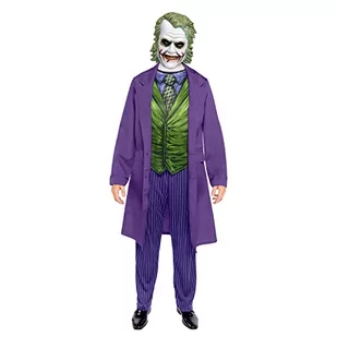 Wymiary mogą różnić się od podanych (+)(-) 2cm Oryginalny kostium czarnego charakteru, upiornego klauna Jokera z filmu Batman. Fioletowa marynarka zintegrowana z koszulą z nadrukiem 3D. Do kompletu spodnie w paski również w kolorze fioletowym. Całości filmowej stylizacji dopełnia realistyczna maska na twarz. Strój wykonany z tkaniny poliestrowej wysokiej jakości. Kostium światowej marki Amscan.