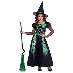Wymiary mogą różnić się od podanych (+)(-) 2cm Długa, czarna sukienka z zielonymi ozdobnymi wstawkami i małym brokatowym pajączkiem na przodzie. Rękawki tiulowe typu bufka. W komplecie niezbędny dla każdej czarownicy spiczasty kapelusz z usztywnionym drucikiem rondem.