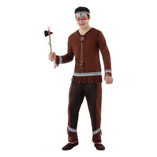 Wymiary mogą różnić się od podanych (+)(-) 2cm Indiański kostium dla nastolatków prosto z Dzikiego Zachodu. Strój w kolorze brązowym z motywami indiańskimi i frędzlami. Bluza i spodnie w pasie na gumkę oraz kolorowa opaska na głowę. Strój wykonany z tkaniny poliestrowej, lekko elastyczny materiał, miękki i przyjemny w dotyku.