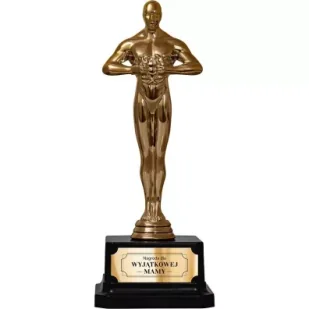 Złoty odcień, wzbogacony czarnym napisem, nadaje jej wyrafinowany charakter. Unikalny napis nadrukowany na statuetce, dodaje osobistego akcentu. Specyfikacja: Materiał: Tworzywo sztuczne, plastik Kolor postumentu: Czarny Wysokość:
