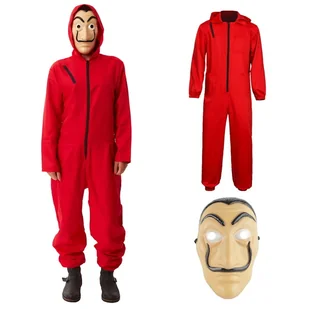 KOSTIUM DOM Z PAPIERU PRZEBRANIE MASKA LA CASA DE PAPEL Kultowy czerwony kombinezon wraz z maską a-la Salvadora Dali - charakterystyczne przebranie bohaterów...