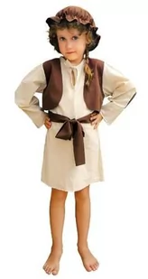 Strój pastereczka. Idealny na Jasełka. W komplecie: sukienka z kamizelką, pasek, czepek na głowę. Rozmiar: XS - 98/104 cm. Całość wykonana w 95% z bawełny, 5% z materiału przypominającego welur.