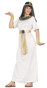 Strój Nefertiti, królowej starożytnego Egiptu dla kobiety. Nada się także jako strój Kleopatry. W komplecie: sukienka z naszyciem przy kołnierzu oraz pas. Rozmiar: L.
