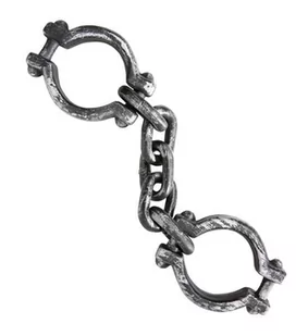 Profesjonalne kajdanki skazańca. Stylizowane na stary metal. Kolor szaro-czarno-srebrny. Dwie bransolety połączone ze sobą łańcuchem. Efekt bardzo realistyczny.