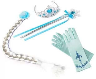 ZESTAW 4 ELEMENTY ELSA ELZA Blond warkocz mocowany do włosów przy pomocy spinki - długość 54 cm Berło, srebrne, zdobione niebieskimi kryształami - długość 32 cm Korona, zdobiona niebieskimi kryształkami, srebrna, rozmiar uniwersalny Rękawiczki, wykonane z miętowej lycry – rozciągliwy materiał, rozmiar jest uniwersalny - 2 sztuki Warkocz, korona, berło i rękawiczki pozwolą poczuć się każdej dziewczynce jak prawdziwa księżniczka z bajki. Zestaw Idealnie sprawdzi się na balu karnawałowym lub przyjęciu urodzinowym, ale także podczas codziennej zabawy Srebrna korona z niebieskimi kryształkami do samodzielnego złożenia. Prosty montaż, wystarczy wcisnąć koronę na wypustki pokazane na zdjęciu obok Zachęcamy do zapoznania się z naszą szeroką ofertą przebrań dla dzieci : ) gdyż . . . ZABAWA TO PODSTAWA!!!
