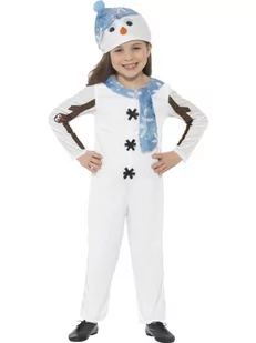 kostium bałwanka dla przedszkolaka w zestawie kombinezon i czapeczka. kolor biały z błękitnymi akcentami idealny pomysł na kostium karnawałowy lub zabawne przebranie na Boże Narodzenie wiek dziecka: 3-4 lata rozmiar: 115-128 cm
