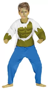 Twój syn uwielbia postacie z komiksów? Mówi Ci coś imię Hulk? Tak, tak to ten zielony siłacz! I on może teraz zostać siłaczem, wystarczy że ubierzesz mu oferowany kostium karnawałowy. Strój Hulka zawiera: bluzkę koszulkę spodnie Materiał: tkanina poliestrowa. Zielona bluzka zapinana z tyłu na rzep.