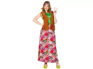 Strój hipiski dla dorosłych. W komplecie: sukienka, kamizelka, opaska na głowę. Rozmiar: XL (44-46).