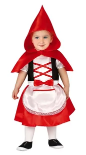 Sukienka czerwonego kapturka z krótkim rękawkiem. Góra sukienki jest czarna z białą wstawką w stylu gorsetu. W pasie wszyta z przodu czerwona kokardka oraz gumka, dla lepszego dopasowania. Spódniczkę od przodu zdobi biały fartuszek z kieszonką. Fartuch ozdobiony jest białą, koronkową tasiemką.