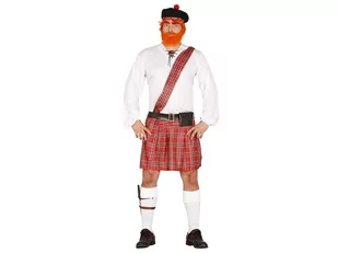Strój Szkota dla mężczyzny. W komplecie: koszula z szarfą, pas, spódnica i czapka. Rozmiar: M.