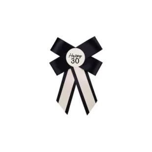 Kotylion na 30 urodziny w kolorze kremowo-czarnym, wymiary ok. 11 x 17 cm. Kotylion wyposażony jest w agrafkę.
