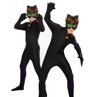 Dziecięcy kostium czarnego kota z akcesoriami Ten kompletny kostium czarnego kota to idealna propozycja dla najmłodszych fanów tajemniczych bohaterów i zwier...