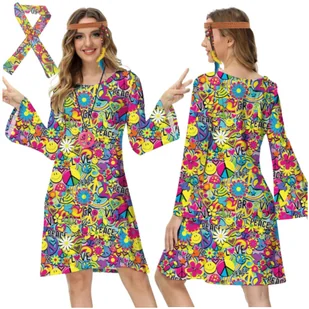 ☘️ HIPISOWSKIE PRZEBRANIE - MINI SUKIENKA Z OPASKĄ ☘️ ✨ Przenieś się do czasów z lat 60/70 z hipisowskim przebraniem, które składa się z kolorowej mini sukie...