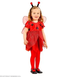 Zestaw zawiera: sukienkę skrzydełka opaskę Sukienka w kolorze czerwonym w czarne kropki. Skrzydełka doczepiane do sukienki. Opaska czarna z czerwonymi czułka...