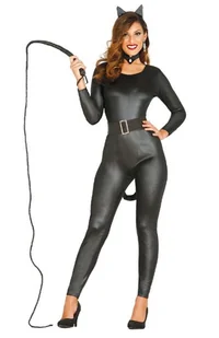 Strój dla dorosłych, kobieta kot, rozmiar S strój dla dorosłych, kobieta kot w zestawie znajdują się: kombinezon z ogonem, opaska na głowę kombinezon koloru ...