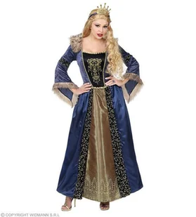 Strój dla dorosłych, Królowa Średniowiecza, rozmiar S strój dla dorosłych, Królowa Średniowiecza sukienka w kolorze niebieskim z halką, zdobiona futerkiem rę...