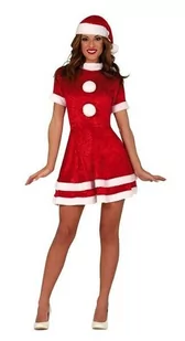 strój dla dorosłych, Mikołajka w zestawie znajdują się: sukienka, czapka sukienka czerwona, wykonana z imitacji weluru, ozdobiona białymi pomponami i białym wykończeniem czapka świętego mikołaja czerwono-biała z pomponem rozmiar: S