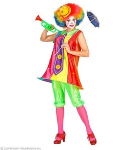 strój dla dorosłych, Pani Klaun zestaw zawiera: sukienkę, kalesony sukienka bez rękawków, kolorowa z miękkiego materiału, dół na kole ozdobiona pomponikami i...