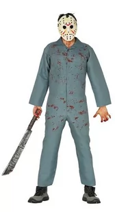 strój dla dorosłych, Psychopata bardzo prosty kombinezon w kolorze szarym, zapinany z przodu na rzep, z kołnierzykiem poplamiony czerwoną farbą mającą imitować krew rozmiar: L