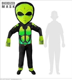 strój dla dzieci, Mały Kosmita zestaw zawiera: kombinezon, maskę kombinezon z długim rękawem w kolorze czarno-zielonym maska typu oversize wykonana z pianki ...