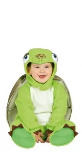 strój dla dzieci, żółw maluch w zestawie znajdują się: kombinezon, czapka, pancerz, buciki kombinezon z długim rękawem w kolorze zielonym czapka przypominająca głowę żółwia, oczy wypchane watoliną zapinana pod brodą na rzep pancerz wykonany z piankowego materiału i doczepiany na rzepy do stroju strój wykonany z poliestru imitującego polar rozmiar: 94