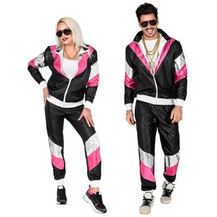 Zestaw zawiera: - bluzę zapinaną na zamek, - spodnie na elastycznej gumce. Strój w kolorze czarnym i różowym ze srebrnymi dodatkami. Skład: 100% poliester.