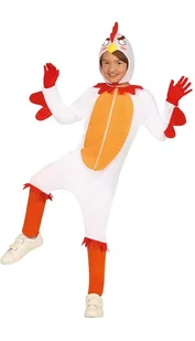 FIESTAS GUIRCA Chłopiec lub dziewczynka kostium odważnego kurczaka - kombinezon z kurczaka i czapka koguta - kostiumy dla chłopców i dziewcząt - Unisex wiek 10-12 lat