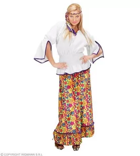 STRÓJ HIPPISKI ZE SPÓDNICĄ; Zestaw zawiera: koszulę spódnicę opaskę. Koszula w kolorze białym. Spódnica w kolorowe kwiaty. Opaska kolorowa.