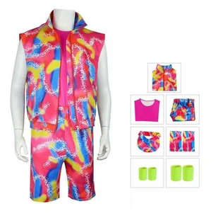 strój w stylu sportowym w żywych neonowych kolorach, bogate dodatki uzupełniają wizerunek wzorowany na Kenie z filmu Barbie, zestaw zawiera: koszulkę bezręka...