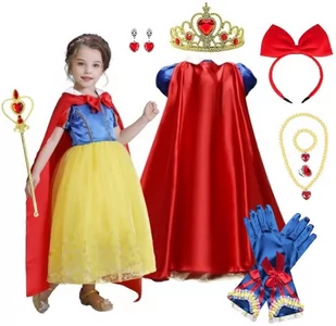 STRÓJ KOSTIUM PRZEBRANIE SUKIENKA KRÓLEWNA ŚNIEŻKA NA BAL KARNAWAŁ Z ZESTAWEM AKCESORIÓW 146 / 152 CM (Z METKI 150) STRÓJ KRÓLEWNA ŚNIEŻKA ✨OPIS PRODUKTU: ~~~~~~~~~~~~~~~~~~~~~~~~~~~~~~~~~~ Przebranie odwzorowane na podobieństwo sukni księżniczki kultowej baśni księżniczki Królewny Śnieżki, Atłasowa sukienka uszyta z połyskujących i błyszczących materiałów, Gorset zdobiony złotymi akcentami z przepięknymi bufiastymi rękawkami oraz czerwoną kokardą nadają sukience prawdziwie królewski charakter, Żółty klosz sukni z tiulem i biały kołnierzyk dodatkowo podkreślają stylizację inspirowaną kultową postacią Królewny Śnieżki, Sukienka na bawełnianej podszewce, długość przed kostkę, krój księżniczki, Zapinana na zamek błyskawiczny, znajdujący się z tyłu, Dodatkowo w zestawie czerwona peleryna - wiązana na szyi, rękawiczki, opaska, korona, berło, naszyjnik, bransoletka, kolczyki-klipsy oraz pierścionek, Wszystkie elementy są wykonane z miłego w dotyku materiału, który zapewnia maksymalny komfort i swobodę ruchów, Ten niezwykły strój nadaje się idealnie na wiele okazji. Niezależnie czy to bal karnawałowy, urodzinowa impreza czy inne tematyczne wydarzenie, Twoje dziecko poczuje się jak prawdziwa księżniczka. Serdecznie polecamy! KOSTIUM KRÓLEWNA ŚNIEŻKA ✨SPECYFIKACJA PRODUKTU: ~~~~~~~~~~~~~~~~~~~~~~~~~~~~~~~~~~ Rozmiar - 146/152 (z metki 150) Wymiary sukienki: