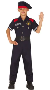 Zestaw zawiera: kombinezon, czapkę, pasek. Kombinezon na krótkim rękawku, ma nadruk "Police" na plecach oraz na klatce piersiowej. Posiada ozdobne guziki. Za...