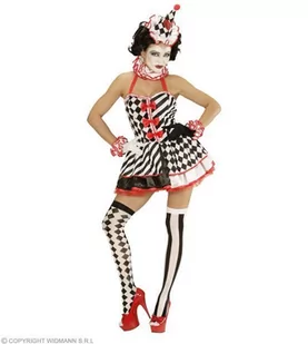 STRÓJ PANI PIERROT; W zestawie znajdują się: - sukienka, - mini kapelusz - naszyjnik/kołnierzyk z falnanek. - mankiety z falnan. Strój w kolorze czarno-białym z czerwonymi dodatkami. Produkt wysokiej jakości.